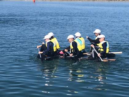 いかだ組は、乗り方を聞いて、いよいよ、出発です!