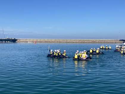 いかだ組 うまくこげています。