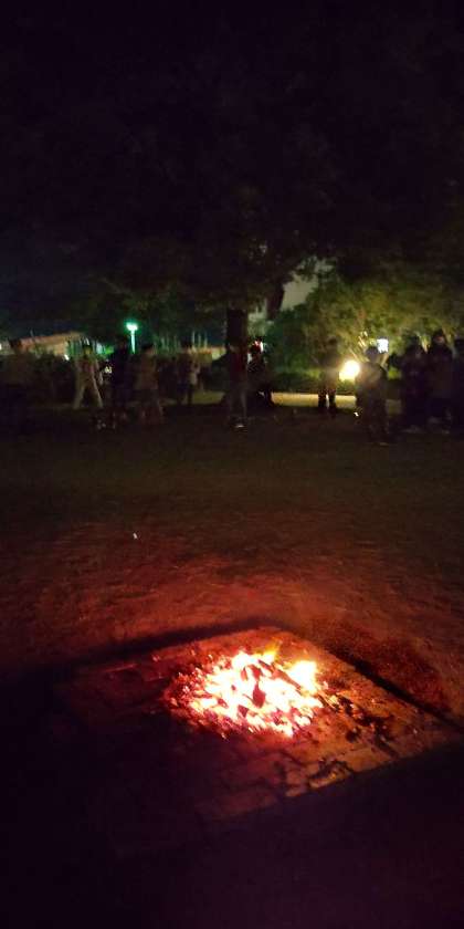 キャンプファイヤーも、終わりが近づいてきました。 みんなで、パプリカを歌っています!