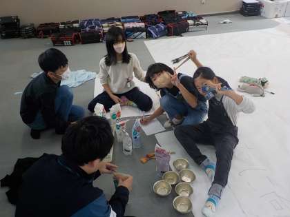 連合音楽会に向けて横断幕を作成しています。どんなものができるのか楽しみです。