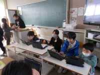 「消防車」の絵を鑑賞しました。部品の描き方や色の塗り方に注目しました。