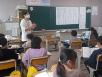 ミニトマトの苗を植えました。「背の高さは、10センチメートルぐらい。」と算数で習ったばかりの単位を使って観察できました。これから、大きくなるのが楽しみです。