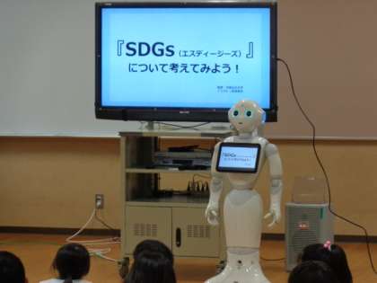 SDGsについて学んでいました。 今日の授業は、ペッパーが先生でした。
