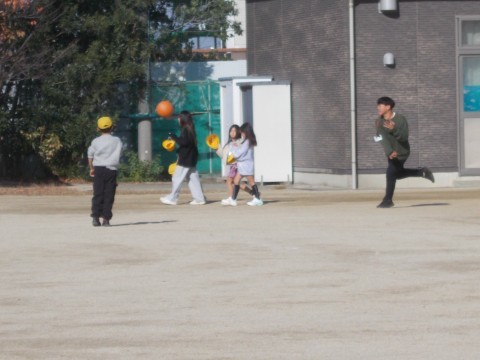 今日の天気予報は,寒くなるといってましたが,児童のみなさんは,汗をかいています。こうやって「投げる力」がついていくんですね!