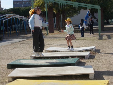 昼からは,風が強くなってきました。先生方とおにごっこをして本気で逃げています。こうやって,肺も強くなっていきます。