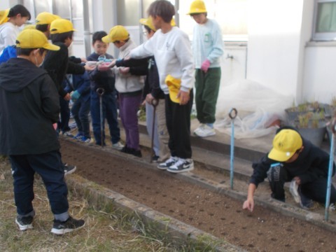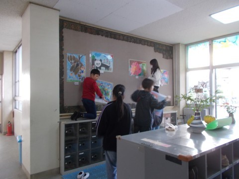 掲示物を貼ったり,体育教材の整理・制作をしたりしてくれました。また,「小松菜」を植えることもしました。学校が,使いやすく・きれいになりました。