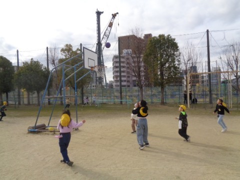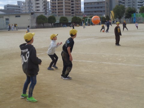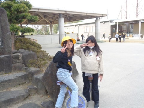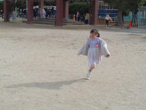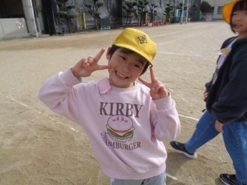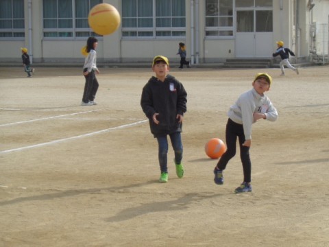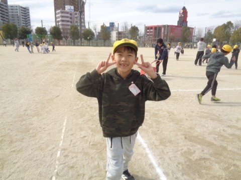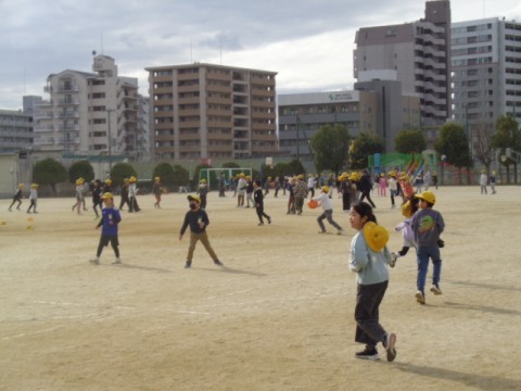 グランドで遊んでいる児童はすぐにグランド中央に集まり,教室にいた児童は放送の合図でグランドに避難しました。
