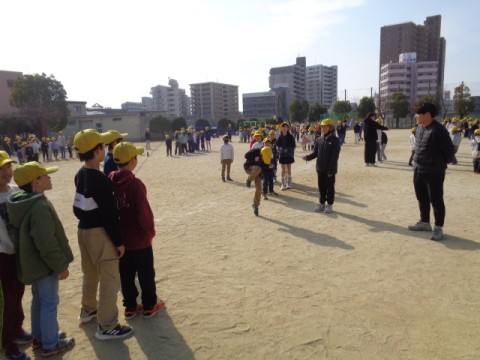 お昼休みには,お日様が顔を出し,少し暖かく感じました。汗をかいている人もいました!元気です!