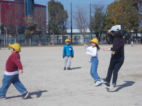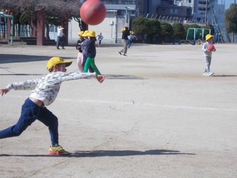 今日は,暖かい日差しがあります。おにごっこをしたり,ドッチボールをしたりしました。