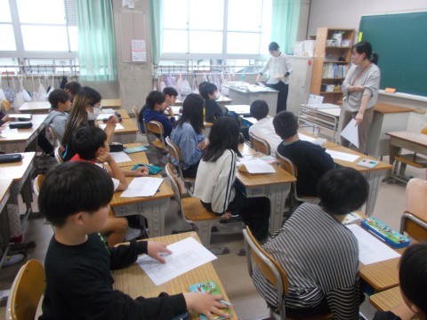 学校探検をしていました。今日は,先生にみんなが使うだろうなぁ,と思う教室を案内してくれました。図書館や保健室などの場所がわかりました。