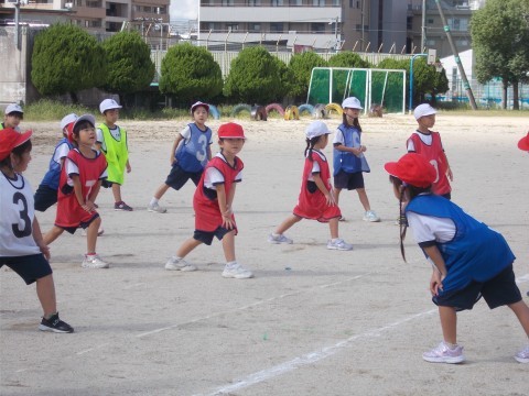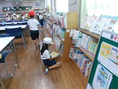 図書室では、読みたい本を探していました。どこに絵本があるのか、だんだんわかってきました。体育では、友だちがじゃまする場所を突破して、ボールを取ってきます。横をすり抜けていくスリリングな感覚が楽しいです!!