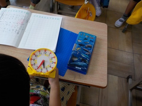 とけいの学習をしています。問題を出し合いました。