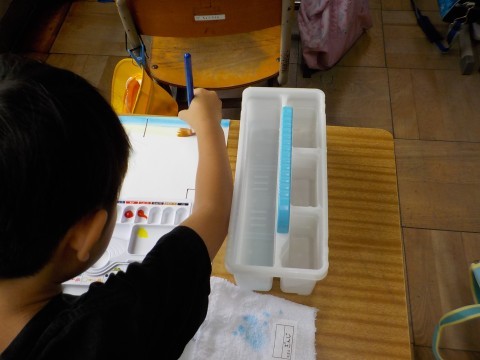 絵の具を使って、いろいろな色を作りました。