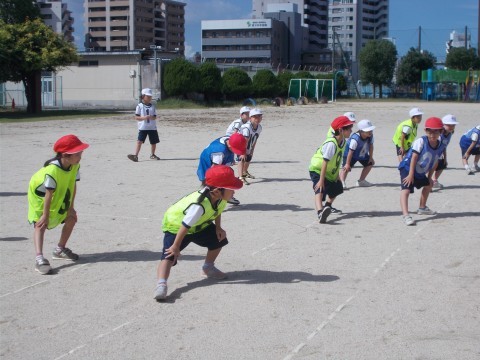 ハードル走につながる動きを学んでいます。