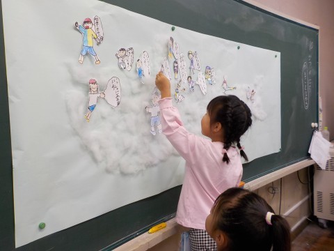 くじらぐもとのお話を、交流しました。