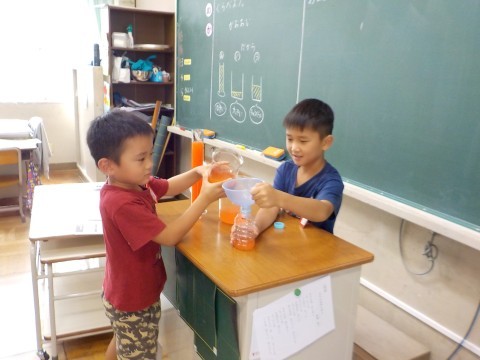 絵具の使い方を習いました。パレットに絵具を出す位置や,水でうすめる場所を教えてもらいました。体育では,国語科の「くじらぐも」の「みんなで空の雲に乗る」場面を実際にしてみました。かわいいかけ声が聞こえてきました。