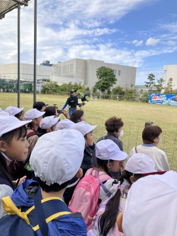飼育員さんの笛の合図で、飛んできます。夜のタカは、静かに飛びます。