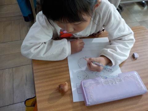 チューリップの球根を観察しました。