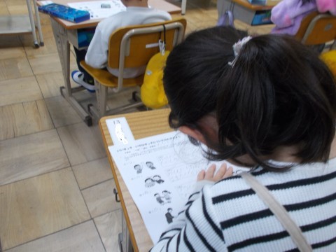 国語では,先生が読み聞かせをしてくれました。聞こえてくる物語に耳を澄まし,場面を想像しました。また,「日記」を書いています。今日の出来事で思ったことや,考えたことを思いだしています。算数の授業では,用意をする姿が素晴らしかったです!
