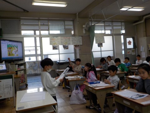 今日は,幼稚園のみなさんと2年生のみなさん・市教委の先生にきていただき,国語科「くじらぐも」の発表をしました。歌った曲は6曲!個人個人の「できるようになったこと」を伝えました。セリフも曲も全部,覚えていて素晴らしい交流会となりました!2年生もほめてくれて,たくさんの拍手をもらいました。幼稚園の先生は,成長した姿に感動し,涙を流しておられました。明日は,5年生に披露します。そして,,,大舞台は土曜参観です。お楽しみに!
