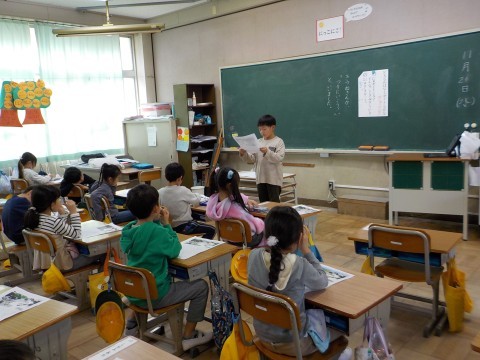 日直さんが朝の会を進めてくれています。連絡帳を書き終わったら,読書タイムです。静かに本の世界に入っています。