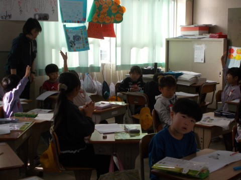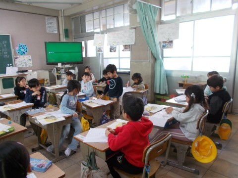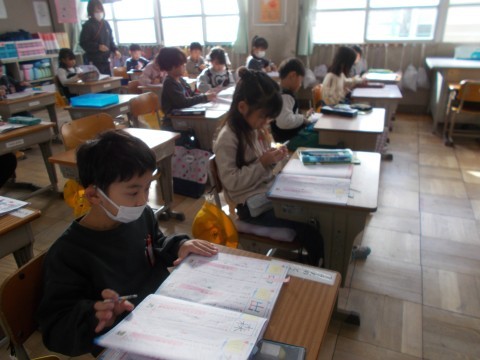 国語では「おかゆのおなべ」のお話を聞きました。また「たのきの糸車」のおかみさんとたにきの会話文を考えたりしていました。算数では,ひき算のときには,どんな言葉に注目して考えたらいいのかを,みんなで確認していました。