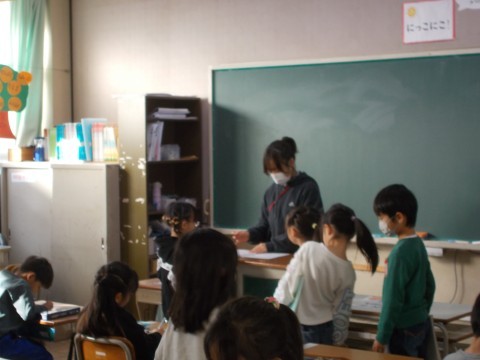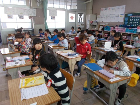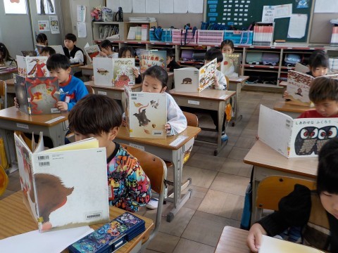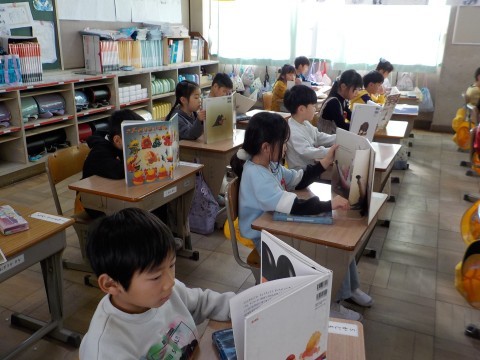 朝の時間には,連絡帳を確認してもらったり,算数プリントの答え合わせの用意をしたりしていましした。また,今日は「とまとの会」のみなさんが読み聞かせをしてくださり,ゆったりと1時間目が始まりました。