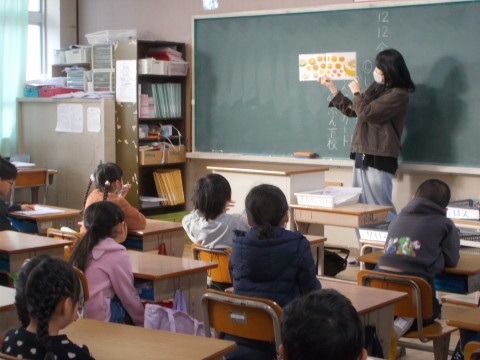 「たぬきの糸車」の最後の場面で,おかみさんとたぬきの会話を考え,このたぬきはどんなたぬきなのか,理由を付けて発表しました。「やさしいたぬき」や「はずかしがりやなたぬき」などの言葉を使って,表現しました。しっかり読み取れていました。