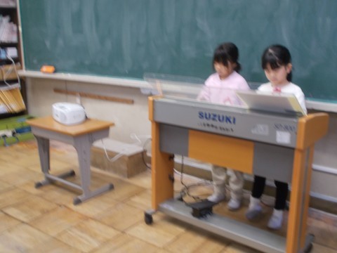 今日は1組さんだけで,ゲームをして楽しみました。ルールを守ったり,譲り合いをしたりと,みんながいい気持ちで過ごせるようにしていました。音楽では,まず最初に「ド」のリレーをしました。前の人が弾き終わったら自分の番がきます。リズムよく順番を目で追いながら発表しました。国語では「てがみでしらせよう」の単元です。目的意識・相手意識がしっかり持てるように,先生から説明がありました。