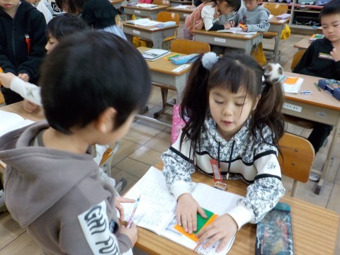 国語では,教科書のお話を静かに読んでいました。生活科では,冬休みの出来事をみんなに伝えたり,質問に答えたりしながら,お話をしました。また,一言日記を書いて今日の出来事を振り返っていました。