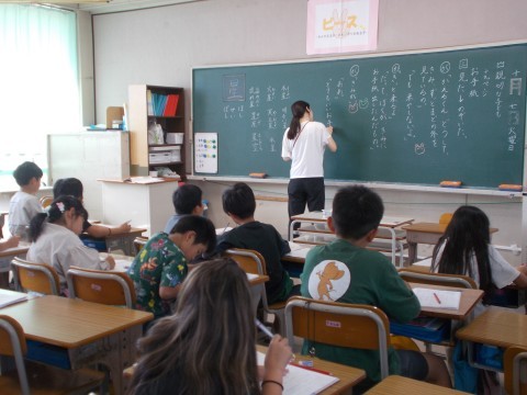 算数は、計算の復習から始めました。国語では「動物園のじゅうい」さんがする仕事を「いつ」するのか、表にまとめていました。