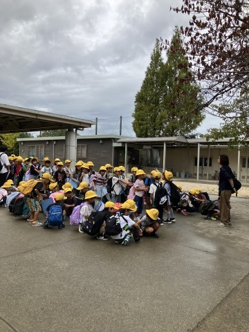 本日,雨がぱらつく状況ではありますが,雨具をリュックに入れて,校外学習の用意で登校してください。
