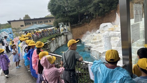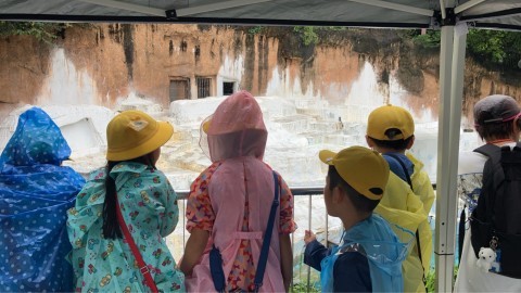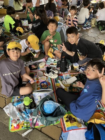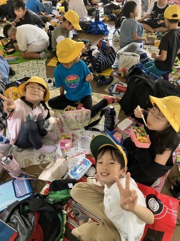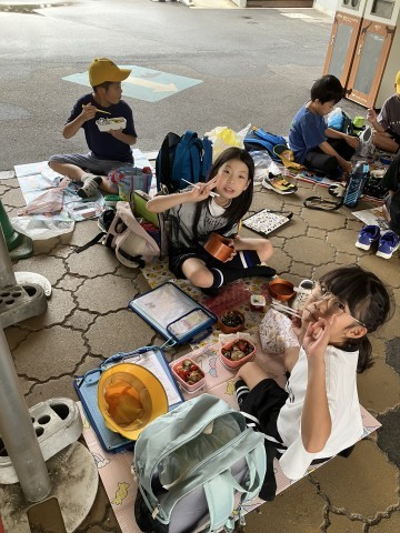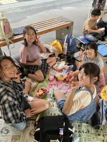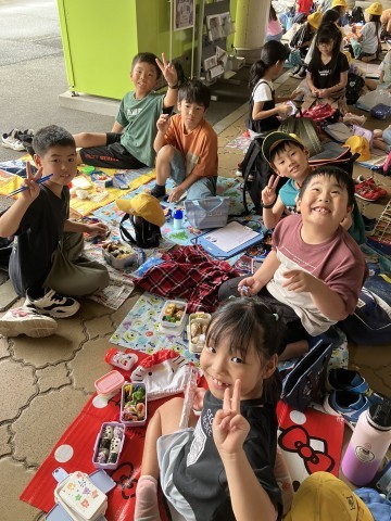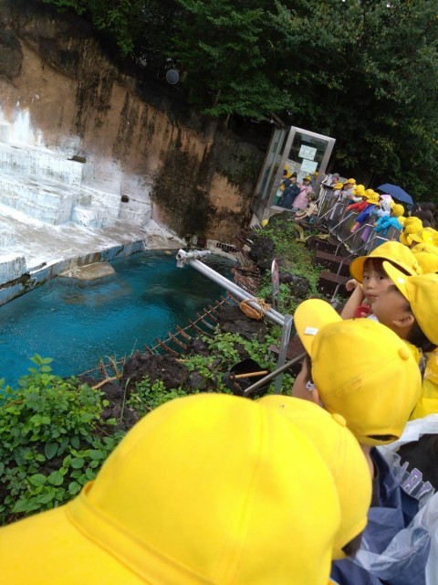 雨はパラパラと降ったり止んだりしています。が、児童のみなさんは大喜びです。
