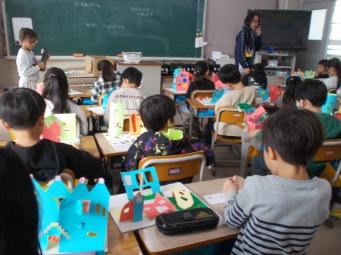 図工では「窓のある建物」を作製中です。ゆらゆら揺れるところがあったり,窓の形も工夫していまいsた。算数では「6の段」を作る学習をしています。6の段ってどんな共通点があるのかを考えながら進めました。