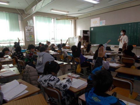 2年生全員で体育をしました。ケンケンで走ったり,大股で走ったりして,心拍数を上げる活動をしました。また,スタートの姿勢を変えたりして楽しい活動でした。寒い中でしたが,児童のみなさんと先生は,いきいきしていました!