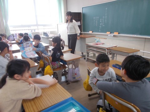 体育の時間に行うゲームのルールを確認し合ったり,作戦を立てたりしていました。また,先生から,今日の時間割や予定を教えてもらいました。