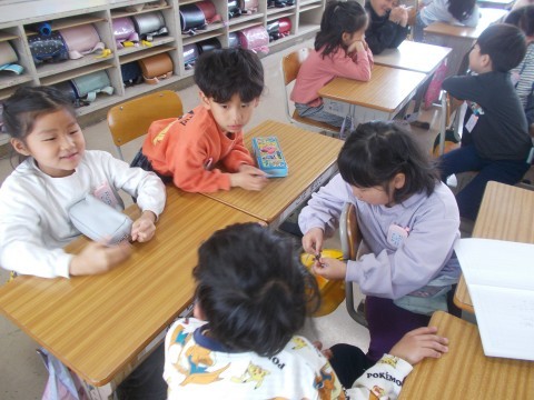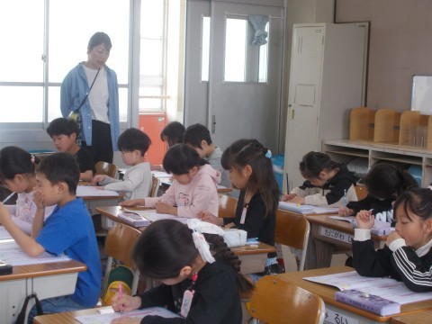 国語のまとめのテストをしたり,算数プリントの答え合わせをしていました。