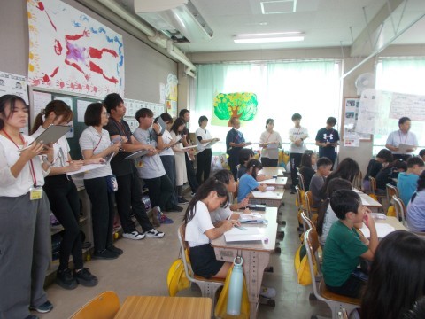 図工では、身近な物を使って未来へ向かっている絵を描いています。絵具を丁寧に塗っていまいsた。算数では、友だちが考えを説明し、みんなに伝えていました。友だちの考えと自分の考えの違いや共通点をみつけます。深い学びに繋がっていきます。