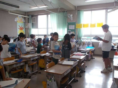 社会では、日本では、どんな物が生産されているのか、仕入れ先はどこなのかなど、パソコンを使って調べていました。また、4年生の先生から、お話を聞く機会がありました。