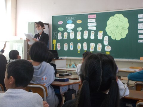 道徳では,自分のもち味(いいところ・好きな事・物など)「もちあじのクローバー」で表していました。先生がその紙を読みながら「誰のことだと思う?」とみんなに聞きました。みんなは,友だちのことをどれくらい知っているかな。