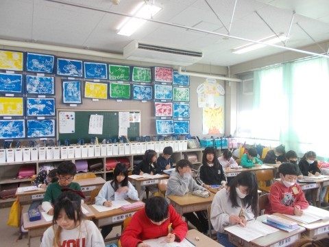 算数では,小数の計算の復習をしていました。先生や友だちと教え合いながら進めていました。国語では「たから島のぼうけん」という物語を書いています。どんな展開が待ち受けているのか!音楽では「クロックミュージック」の発表をしました。トライアングルの持ち方など,友だちからアドバイスをもらいました。