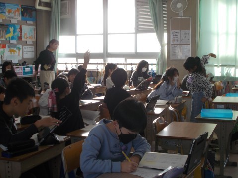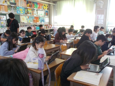 国語では,みんなで単元の「つけたい力」を確認して音読に入りました。算数では,みんなで「計算の決まり」のプリントの答え合わせをしていました。社会では,伝統工芸品を残していくために大切な事を教科書から学んだり,自分の間あげを発表したりしました。