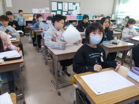 算数では「分数の計算」の仕方やたしかめをしました。保健では「変化していくわたしたちの体」について学んでいました。みんなが成長の過程を知る大事なことです。