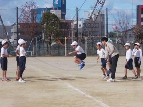 大繩をしています。声をかけたり,入りやすくしてあげたりと,工夫が見られました。