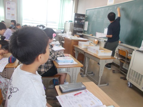 外国語では,国名の発音をネイティヴの先生から,丁寧に教えてもらいました。強くする部分・あげる部分などわかりやすく言ってくれました。算数では,ひっ算の計算をみんなと確認しながら,進めていきました。国語では,新出漢字の書き順を指で押さえてから,練習に入りました。