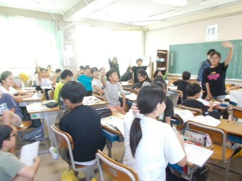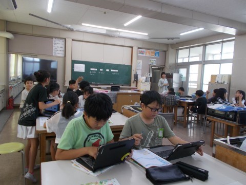 水産業のいいところや困っているところを発表したり、この夏休みに行きたいのは「沖縄」か「北海道」かの意見交流をしていました。