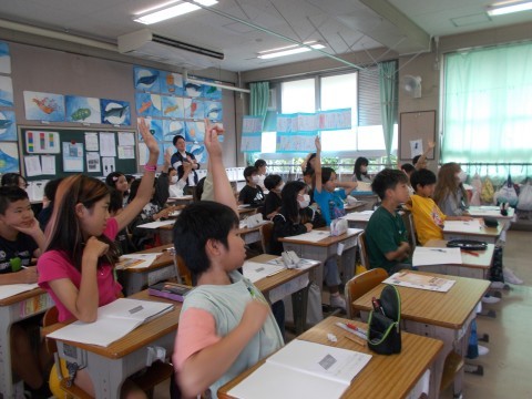 「方言クイズ」をして、日本の国の文化を深めています。今日は、「沖縄」でした。よく耳にする方言もありますが、全くわからない言葉もありました。算数では、答えを分数や小数で表したりする練習をしました。