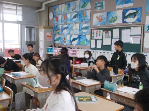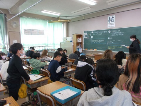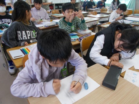社会では「日本の貿易と工業生産」について,「輸出」という言葉から世界との関係を考えていました。総合では,来週行われます「参観へのご案内」を書いていました。
