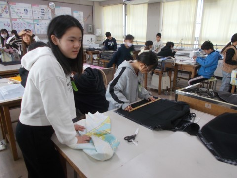 エプロンを作製中です。ミシンを使いこなして自分だけのエプロンです。
