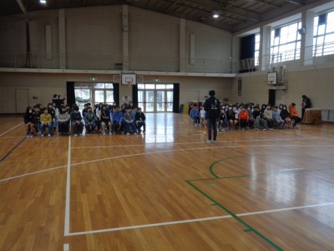 今日の給食は「節分」メニューで豆が出ていました。「先生,臨海の時の鬼は今日は,来ーへんの?」「違うで。あれは,火の女神様やで!」外国語では,自分のメニューの説明を先生に聞いてもらいました。
